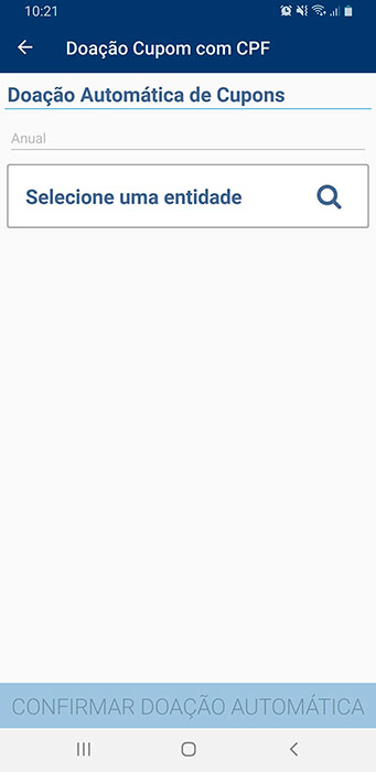 Nessa modalidade você pode optar por fazer o cadastro para doação automática para a SOBERP, assim todos os cupons emitidos no seu CPF serão cadastrados automaticamente. Assim não é necessário cadastrar individualmente cada cupom.