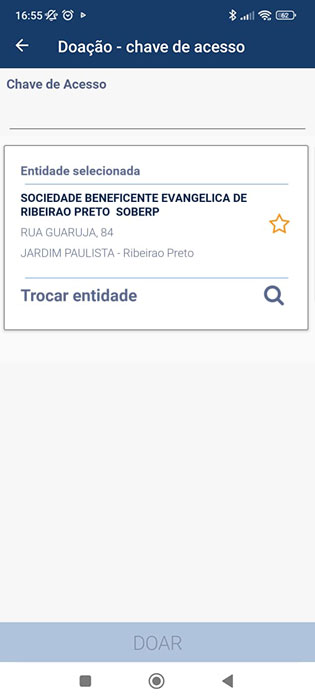 Após selecionar a entidade você pode clicar no botão “DOAR”.